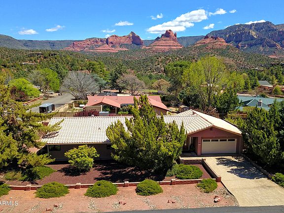 Premium Uptown gem nestled in the heart of Sedona's breathtaking landscape offering MAJESTIC VIEWS. Meticulously cared for and updated with brand new carpet and paint throughout: ALL ON ONE SINGLE LEVEL. Step inside to discover quality kitchen cabinetry, granite counters, Pella windows and sliders, and a center island for effortless entertaining. Retreat to the comfortable master suite w/ panoramic views, a spa-like ensuite bath, where you'll find an inviting atmosphere for relaxation and rejuvenation. Immerse yourself in the serene beauty of Sedona's panoramic Red Rock views from the comfortable covered 10ft X 35 ft deck, perfect for gathering with friends or enjoying the awe-inspiring sunsets. Located in a highly coveted neighborhood on a large corner lot, this property offers peace & quiet, yet is just moments away from Sedona's finest dining, shopping, and outdoor adventures. Steps away from hiking trails, STR FRIENDLY, this home is truly move-in ready. Don't miss this rare opportunity to own your slice of Sedona paradise. Other notables: 2004 Roof, 2004 Kitchen remodel including granite counters & Cabinetry w/ etched glass doors, Stainless Gas Cooktop and Side by Side Fridge, 2024 GE Oven & Convection/Microwave, 2004 Pella Windows and Sliders, 2021 gas hot water heater, 2024 All new Interior Paint and Carpet. Furniture package & Art available as a separate bill of sale.