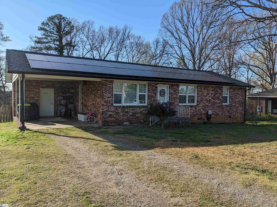 Adorable 3BR/1 Bath brick ranch in established neighborhood. Has a HUGE fenced back yard for the kids and pets to play. Spacious open concept from the dining room looking into the kitchen. Home has hardwoods and luxury vinyl plank flooring throughout with 3 good sized bedrooms for the growing family. New HVAC installed 2022. This will make the perfect starter home just minutes from I-85 and BMW. Solar panels make the energy bills very affordable. Current owners have maintained home very well. MOVE IN READY! Refrigerator and W/D can stay with acceptable offer Schedule your showing today. This one will not last long!!