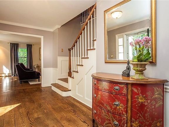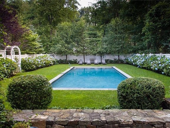 Smart, sophisticated 4-bed/4.1-bath Colonial. Classic exterior detailing w/working shutters, window flowerboxes, columned portico entry & Cardillo in-ground gunite pool. Stylish interior spaces filled w/high-end finishes. Sensational kitchen & baths. Front-to-back living room w/fireplace & built-in window bench seat. Formal dining room w/galley door to chef's kitchen outfitted w/professional-grade appliances & gorgeous marble counter tops. Kitchen & breakfast room share magnificent hand-cut marble tile floor warmed w/radiant heat. Family room w/fireplace & French door to deck. Beautiful, expansive master suite addition w/gas fireplace, salon & spa bath w/steam shower. Spacious bedrooms sweetly styled w/custom built-ins. Full finished 664sqft walk-out lower level recreation room, gym & full bath. Natural gas & whole-house generator. New roof & cedar fence (2018). Professionally manicured landscaped. Set in serene Dodge Farms, within strolling distance to Chappaqua shops, train & town.