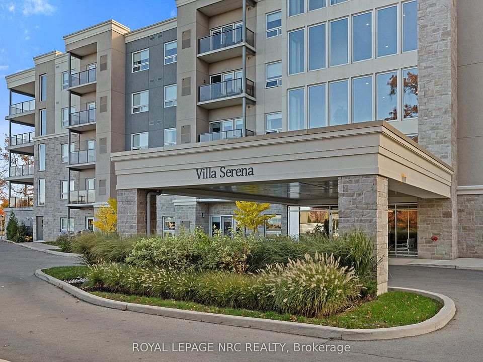 The incomparable Villa Serena is an exclusive 55+ adult, life lease community which is now offering this spacious 1350 sq.ft., 2nd floor end unit, designed for a carefree lifestyle. The well-designed interior features granite countertops with a breakfast bar, white kitchen cabinetry & built-in pantry within an open-concept layout featuring high ceilings and decorated in a sophisticated white palette. There are 2 spacious bedrooms, an ensuite bathroom plus full second bathroom. The balcony provides a treed view of the landscaped, park-like property with north-west exposure. Constructed in 2020, Villa Serena boasts above-average amenities, including an underground heated parking spot with an enclosed storage cage. Additionally, a large storage locker is conveniently located on the 2nd floor in a well lit room with pot lights & floor to ceiling window. The main floor features an expansive party room with a gas fireplace, piano, billiards, ping pong table and access to outdoor seating. Garden doors lead to the substantial patio with comfortable seating, multiple gazebos, and two natural gas barbecues, all enclosed by wrought iron fencing and surrounded by mature oak trees. Other amenities include a community sunroom with large balcony on each floor, a well equipped gym, craft room & bicycle storage. The garage offers a convenient car wash and the building amenities are accessible by a secure keyless entry. This is an adult-only building, however, grandchildren are welcome for sleepovers and a small pet under 25 lbs, such as a cat, bird, or small dog, are permitted. This luxury lifestyle includes property taxes within the affordable monthly maintenance fee, with the added benefit of no land transfer taxes upon closing. The property's unique quality features can truly only be appreciated during a visit. It is conveniently located near Club Roma events, the hospital, shopping, dining, a variety store, and Short Hills Provincial Park.