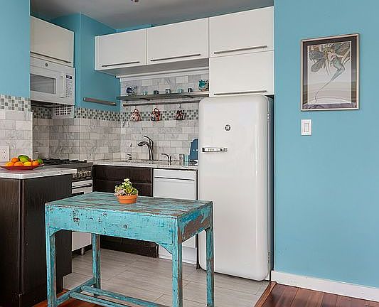 Greenwich Village, NYC. Hasn't this always been your dream destination? Might this perfect, sunny studio be your landing place? Roomy enough for any size bed you enjoy, along with additional ample space to lounge, gather, study or enjoy a delicious repast. An open kitchen beckons, with marble countertops and brand new appliances, including a Bertazzoni range, built-in GE microwave and dishwasher, a Brama retro-styled refrigerator and Waterdrop under-counter water filter. There are four separate closets for all of your treasures. This home is light and bright, and high enough to see both the Empire State Building and the Freedom Tower (if you lean just right). Temperature is regulated by radiator heat and a through-the-wall air conditioner. The building is wired for Spectrum and Verizon Fios.