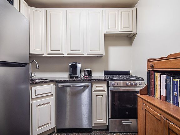 This sweet home is just one flight up and has charming prewar details such as a wall of exposed brick with a decorative fireplace, hardwood flooring, and soaring (over 12 feet) ceilings. Both the living room and bedroom have oversized windows looking north over the quaint backyard gardens and the large open kitchen features new stainless steel appliances. Plus, the high ceiling height allows for a new owner to create a stand-up loft (which most units in this brownstone coop have already done) to maximize space and create a whole new lofted space. There are many possibilities to transform this charming space into your very own jewel box in the heart of the Upper West. Also note, there is plenty of storage and closet space, thru-wall air conditioning, and very low monthlies.