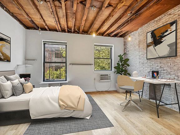 As you step into this 404-square-foot gem, you'll immediately be captivated by the exposed brick walls and high ceilings, which add a touch of historic charm. The oversized windows with southern exposure flood the space with natural light, highlighting the beautiful hardwood floors throughout.