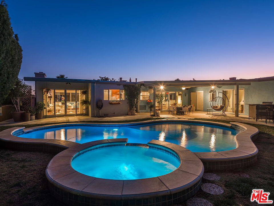 A classic example of Mid-Century Chic designed by architect Graham Latta and thoughtfully re-imagined for today. Located in prime Glendale just minutes from shopping, restaurants and all the amenities the city has to offer. A staircase with glass banister leads to the living room with wood floors, fireplace and city views. The living space transitions to a dining area with sliding glass doors exiting to the back yard and the updated kitchen with quartz counters, designer hardware and professional grade appliances. The effortless flow continues to a spacious family room that also has sliding glass doors opening to a spectacular back yard with an expansive patio, drought tolerant plantings and a wonderful pool and spa for summer fun in the sun. The master suite has a remodeled bath with an oversized walk-in shower. A center hall provides outdoor access for 2 of the bedrooms and a 3rd has sliding glass doors for direct access. This is California living at its finest.