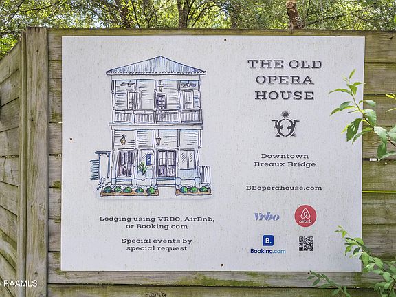 Step back in time with the iconic Jules Broussard Building, built in 1885 and brimming with Breaux Bridge history. Once a general store, opera house, and even the town's first public school, this beautifully preserved landmark now serves as a fully furnished short-term rental destination--but can easily function as a home or office. Located in downtown Breaux Bridge, it's within walking distance of restaurants, galleries, and antique shops. The property includes two separate apartments or one spacious residence: downstairs features 4 bedrooms (one perfect as an office) and 2 baths, while upstairs offers a wide-open 1 bed, 1 bath loft with full kitchen and laundry. Sitting on an extra lot used for parking and storage, this rare historic gem can be sold furnished and ready for its next chapter.