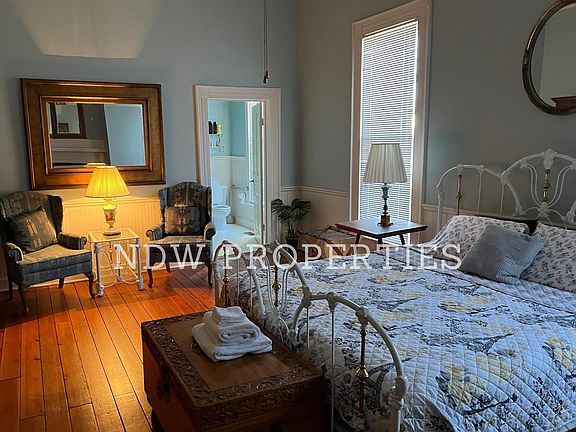 Beautiful victorian historic home available for rent as a short term option (or long term) consisting of 3 large bedrooms and 4 bathrooms. EVERY bedroom has its own bathroom. Home has an extended front porch with a disability ramp, a rear porch, 12+ foot ceilings, original hardwoods from the early 1900s, original refurbished windows and antique furnishings.