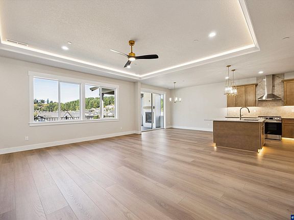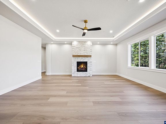 This stunning brand-new home offers 3 bedrooms on the main floor, a large office, and an additional upstairs bonus room. The open floor plan features wide plank luxury laminate flooring, a gorgeous stone fireplace, and a chef’s kitchen with an oversized island featuring Taj Mahal quartz countertops, a full-height stone backsplash, and a pantry that everyone hopes for in their luxury kitchen. The covered deck with outdoor gas fireplace is perfect for year-round entertaining. Retreat to the primary suite on the main level with a walk-in shower and a walk-in closet. All bathrooms feature quartz countertops, creating a cohesive, luxurious feel. Looking for RV parking? We've got you covered.