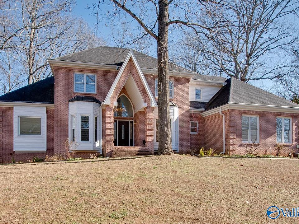 Two-story brick residence has a finished basement hosting a 25 x 24 recreation room, an ideal spot for game days and gatherings. 6 bedrooms and 5 baths have ample space for family and guests. 21ft vaulted ceiling in living room and 18ft ceiling in foyer. The large eat-in kitchen features a large island. All this plus a three-car garage, offers the perfect blend of comfort, and functionality. It is ready for you to put your personal stamp on it. Nestled on a spacious lot, fenced backyard with mature trees and a full deck. Just 15 minutes from Redstone Arsenal. **Now with new LVP flooring and updates to deck.** All facts TBV **Currently has FROR**