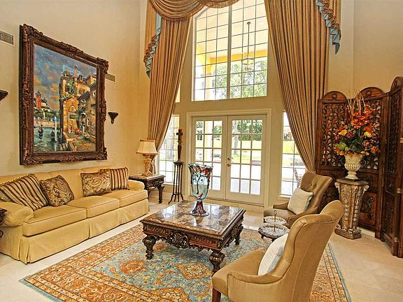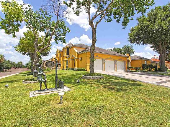 Corner lot w/luxury home features 3 car garage & 2 car detached carport. Grand entrance, high ceilings, floor to ceiling windows, custom chandeliers & wide staircase. Master bedroom on 1st floor w/its own home theater, oversized bathroom and extra spacious walk in closet w/built-ins. Kitchen open to den w/surround sound, wet bar & french doors to patio. Plus, private guest room w/full bath on 1st floor. 2nd floor w/2 large bedrooms, family room, 2 balconies & a bonus room.