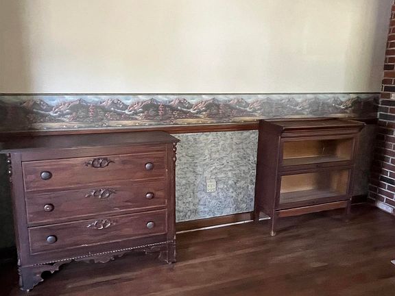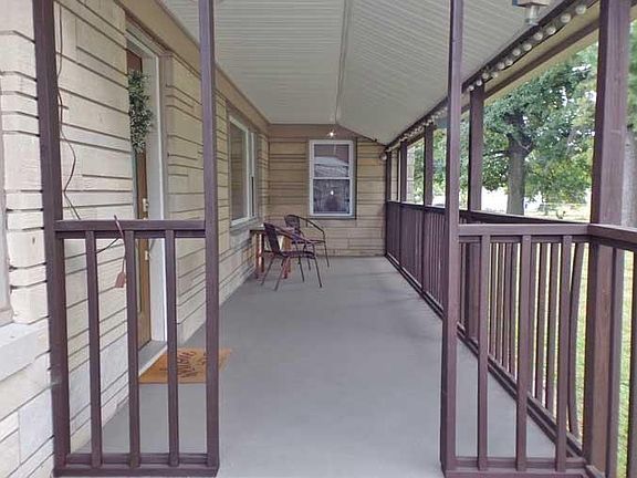 Your own private park at the edge of Oaktown - hidden gem - attractive - surrounded by trees. Wonderful setting on over an acre. Easy access to the highway. One-level Bedford stone home with a huge 2+ car garage & workshop. Large deck plus covered front porch. Original hardwood floors, brick fireplace, 3 big bedrooms, huge bath. Very neat kitchen with cabinets (probably from 1800's) from a grain store. Beautiful glass-front cabinet. Dining area plus a formal dining room. 2,140 sq ft pole building with a heat pump, kitchenette, & a full handicap bathroom. Encapsulated crawlspace. So many possibilities on 105 Wolfe St.
