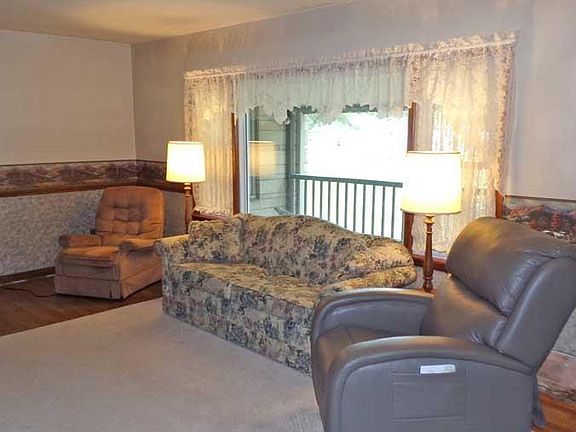 Brick fireplaceLarge deckDining areaCovered front porchSurrounded by treesOver an acreFormal dining room