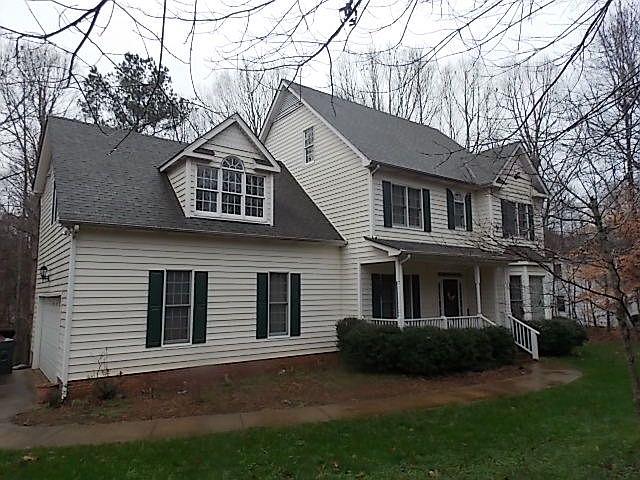 4 bedrooms, plus bonus room, formal dining room, formal living room or study, gas log fireplace, walk up attic on third floor with room to expand, spacious and wooded lot, spacious garage, storage building, deck, rocking chair front porch, newer flooring upstairs on second level, low maintenance vinyl siding on exterior and MUCH more! New roof in 2020.
