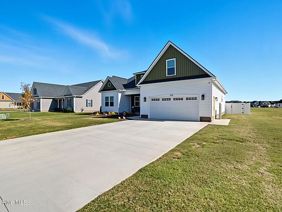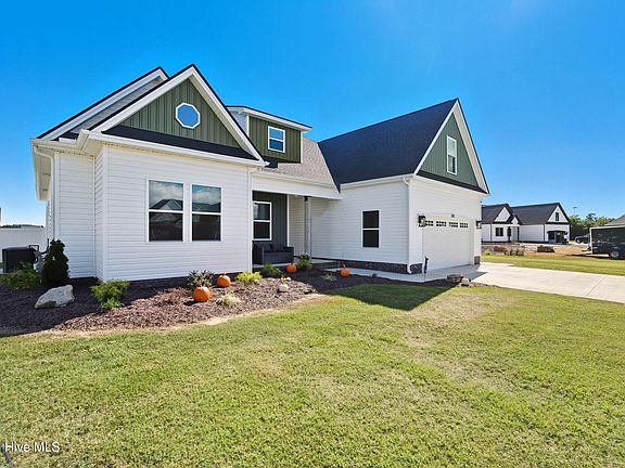 Skip the wait for new construction and move right into this 2024 built home. Every detail has already been taken care of for you from the vinyl fence and storage shed to professional landscaping and custom blinds making your move completely stress free. This Homelink build, Georgetown model, with 2,801 sq ft offers four bedrooms plus a flex space that can easily be reverted to a fifth bedroom. The open layout connects the living, kitchen, and dining areas, creating a bright and welcoming main level. The kitchen features a gas range, granite countertops, and an impressive pantry with wood shelving and extra counter space. The first-floor primary suite includes a luxurious bathroom with a beautifully tiled shower, dual sinks with quartz countertops, and a spacious walk-in closet. A second bedroom and full bath are also located on the main level, along with a laundry room complete with washer and dryer. Upstairs, you'll find a large FROG, two additional bedrooms, a full bath, and a floored walk-in attic for extra storage. Outside, enjoy the retractable SunSetter awning, extended patio, and expansive fenced backyard. The two-car garage includes a generator hook-up, on the exterior, for added convenience. Make this beautifully finished home in Tooley Harbor your next address.