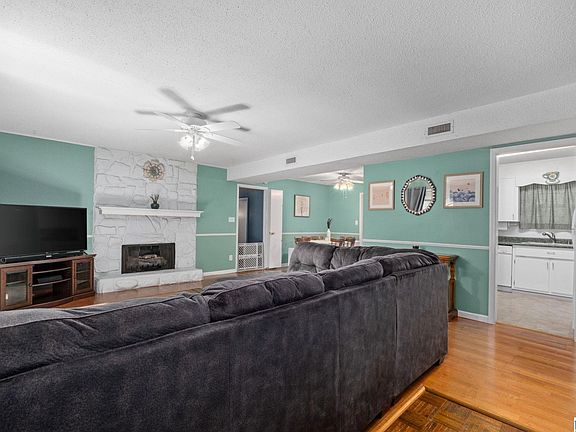 - Fireplace features: Gas Log, Stone, Ventless, Den, Living Room, Gas