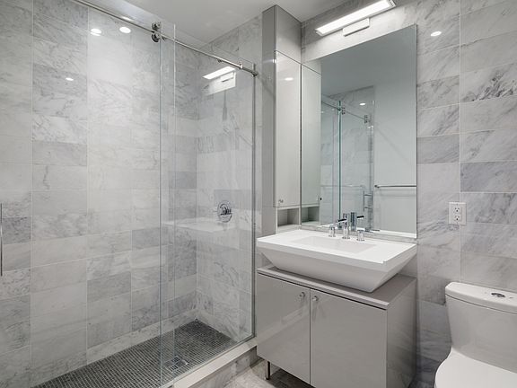 New luxury, Two Bedroom apartment neighboring the iconic Bryant Park. The entry way foyer opens to a sun-drenched unit with floor to ceiling windows and close to ten-foot ceilings throughout. Modern kitchens have custom cabinetry, Northern white oak flooring, limestone backsplashes, Caesarstone counter tops and state-of-the-art Bosch appliances with gas range cook top. Marble bathroom with honed limestone flooring and polished stoned mosaic shower flooring. Moen polished chrome fixtures throughout the unit. Abundant closet space throughout, including custom organization systems by Organized Living. Bosch washer and dryer in unit.