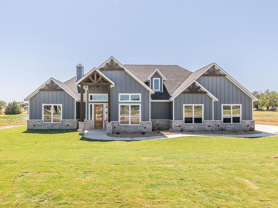 Welcome to your dream home in beautiful Parker County! This stunning property combines classic charm with modern luxury, offering an exceptional living experience. Sitting on 1.299 acres this home provides a serene and private oasis away from the hustle and bustle of city life. No HOA! NO CITY TAXES and is in Springtown ISD. Step through the front door and be captivated by the open-concept design, flooded with an abundance of natural light that highlights the high ceilings and elegant finishes throughout. Three bedrooms and an office-flex room, two and one half baths. In the kitchen, there is a butlers pantry with entry from the garage. The laundry room has a farm sink, drip dry station and built in cabinets and located next to the primary closet. The primary suite has coffered a ceiling with custom ceiling work. The backyard view is of mature native berry bushes. The front is landscaped with drought resistant plants the yard is sodded and has a zoned sprinkler system.