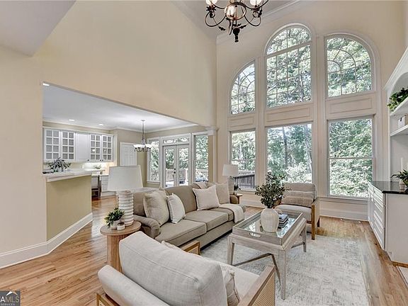 Gorgeous Golf Course Views & Private Retreat Step into this beautifully maintained home featuring a guest suite conveniently located on the main level. A dramatic wall of windows in the great room fills the space with natural light and frames serene views of the private backyard, where trees create a peaceful setting along the golf course. The expansive primary suite is a true retreat with a fireplace, tray ceilings, and a lovely bay window. The en suite bathroom delivers more "wow" moments with soaring vaulted ceilings, a private window above the soaking tub & separate vanities. The kitchen is light, bright, and functional with white cabinetry, stainless steel appliances, and extra storage space-including glass display cabinets, built-in wine storage. Hardwood floors span both the main and upper levels, adding timeless charm throughout the home. The great room flows seamlessly to an oversized deck, ideal for entertaining or relaxing in total privacy. Just off the entrance, a cozy office with custom arched built-ins provides the perfect workspace, while a separate flex room can be used as a formal dining room or bonus space. The unfinished basement ( 1,582 sf )offers walkout access, golf course views, and is already framed for future bedrooms and expansion-perfect for creating even more personalized living space down the road. Living in Windward means access to exceptional resort-style amenities including a private 195-acre lake for boating and fishing, a sports park, walking trails, and the optional Windward Lake Club and Golf Club of Georgia memberships. Just minutes from top-rated schools, Avalon, and GA 400, this home offers both luxury and lifestyle.