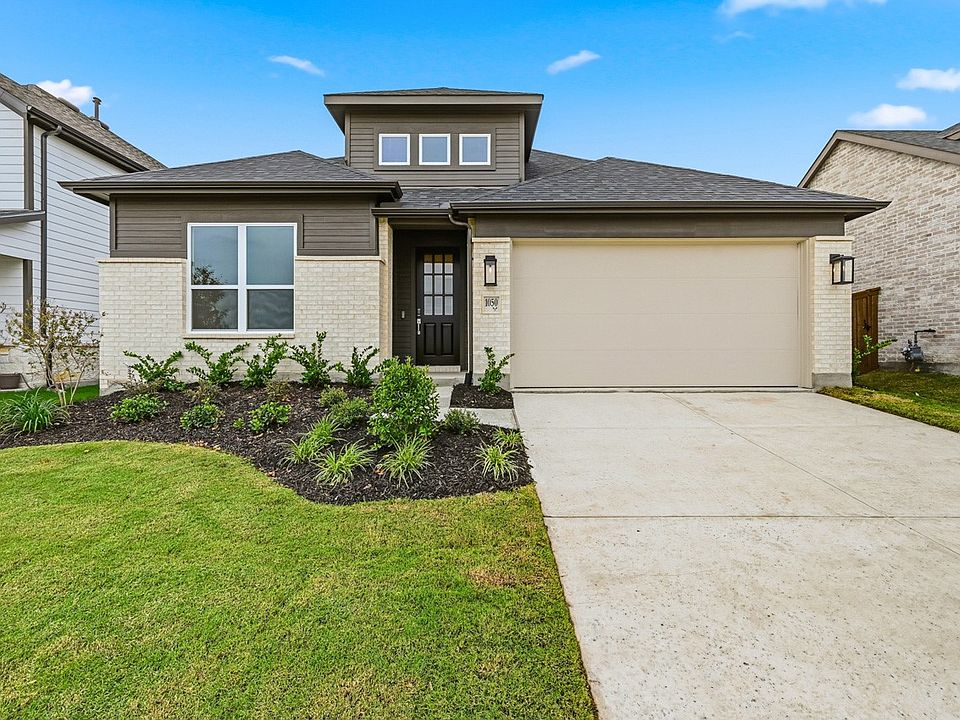 Spacious, 1-story brick home with 11’ ceilings, open concept floor plan with study. Vaulted family room ceiling with fireplace. Kitchen features tile backsplash, gas cooktop, pantry and expansive quartz island. Oversized Primary bedroom with box window, large walk-in closet, free standing tub, separate shower and dual sinks. Enjoy entertaining on the covered patio.