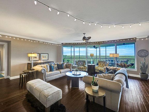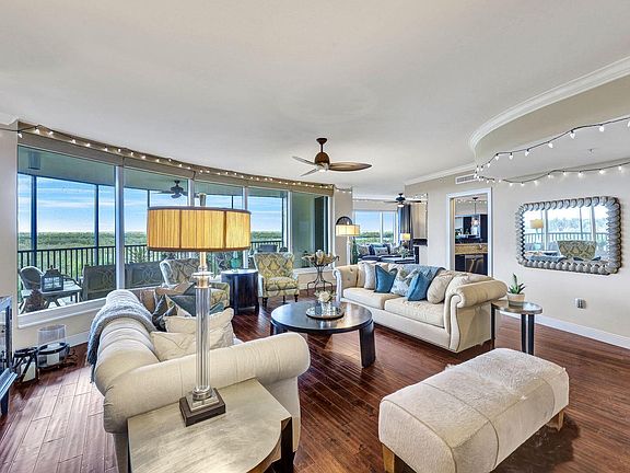 AMAZING FOREVER UNOBSTRUCTED views from Marco Island to Naples & the Gulf of Mexico - Enjoy SPECTACULAR vistas of the Everglades, glorious sunrises, magnificent sunsets, From the Luxury that is Lesina at Hammock Bay! take your Private elevator to your large private foyer. Spacious Great room and dining area Beautiful wood flooring, custom window shades, light fixtures and impact windows throughout the home. Nicely laid out kitchen with stainless steel appliances, abundance of cabinets and granite countertops, looks into second family room area with eat-in breakfast bar. The PRIMARY suite has OVERSIZED walk-in closet, huge bath room with separate shower, tub, water closet, and his and hers vanities, custom tile. Two parking spaces and a storage unit are in the lower level of this elegantly landscaped building. Lesina offers a resort style pool with cabanas, outdoor entertainment area, fitness center, guest suites, theater, library, outdoor pet area, and is only minutes away from the beaches of Marco Island and downtown Naples.