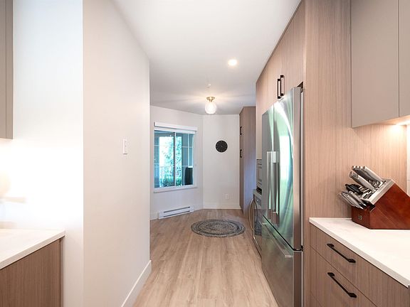Beautifully Renovated 1,422sqft 2 Bedroom + Den! Don’t miss this high-quality, professionally designed home in sought-after Parkway Terrace. Thoughtful custom cabinetry & built-ins throughout, with organizers in every closet & the laundry/storage room. The spacious den/office & two generous bedrooms include a primary suite with a large walk-in closet & a stunning, fully renovated ensuite. Both bathrooms were gutted & redesigned. The chef’s kitchen features a Fisher Paykel fridge & stove, Blomberg dishwasher, Smeg microwave, & wine fridge. Popcorn ceilings are gone, lighting is upgraded w/ dimmers, & modern finishes shine. Near Parkgate shopping, Northlands & Seymour golf courses, hiking, biking trails. Lots of storage, 1 secured parking stall, 1 locker, 1 pet ok, & EV charging permitted.