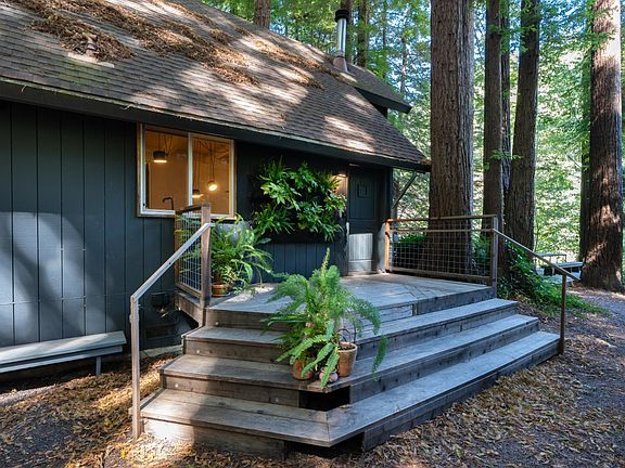 Step inside Caz-cabin nestled in the heart of Sonoma County's enchanting redwood forest. Thoughtfully redesigned by Studio PLOW, the home features an open floor plan with soaring ceilings, abundant natural light, and a dramatic floor-to-ceiling stone fireplace. The custom kitchen includes Valchromat cabinetry, sleek black steel countertops, and premium appliances. The main house offers flexible sleeping arrangements, including an en suite bedroom on the main level and a loft upstairs, comfortably sleeping up to 10 guests. A detached 10' x 12' studio with a Murphy bed provides additional space for guests, a private office, or a creative retreat. Whether you're looking for a personal retreat, vacation home, or investment property, the Caz-cabin delivers modern comfort surrounded by nature. Ideally located with direct access to Austin Creek, and close to the Russian River, local wineries, and the Sonoma Coast.
