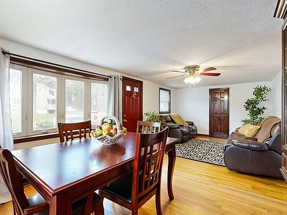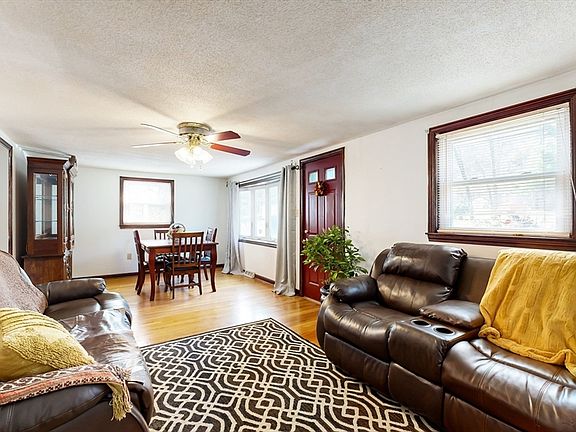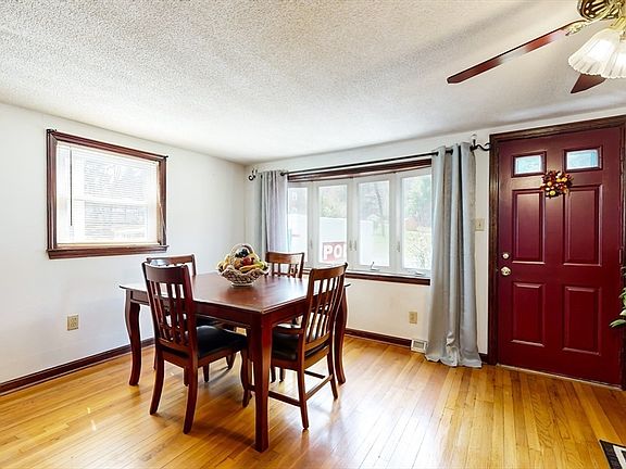 The home with the white picket fence! With great bones and lovely curb appeal, this 3 bed 2 bath ranch offers a living room with hardwood floors and a bay window, a kitchen with adjacent sitting room, and a large primary bedroom with skylights and great closet space. Two additional bedrooms feature lovely wainscoting and hardwood floors and there is plentiful storage throughout the home. The partially finished and heated walkout basement features a generous recreation room with wood burning stove, the second bath, laundry area with built in storage cabinetry, and a storage room with workbench. A spacious, fenced yard provides space for outdoor entertainment and enjoyment.