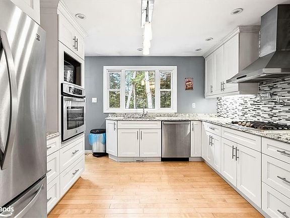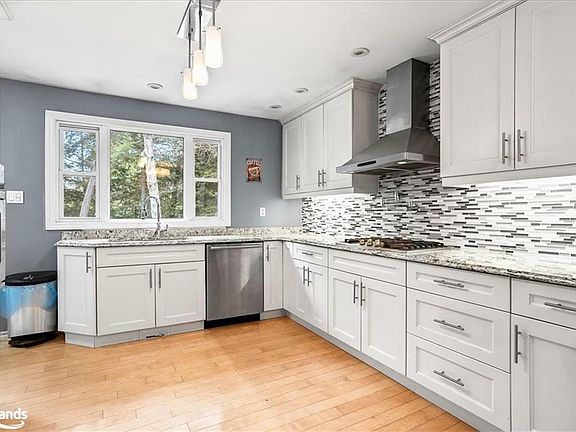 Welcome to your peaceful riverfront retreat with boating access to Beech Lake! This Haliburton waterfront cottage or home offers a picturesque setting on the river, perfect for swimming, fishing, and providing access to Beech Lake. Step inside to discover an updated open-concept living, dining & kitchen, featuring quartz countertops, marble backsplash, and a gas range with pot filler. Step out onto the newer deck with glass railings for outdoor dining and entertaining. With two main floor bedrooms and a large 4-piece bath with glass shower and large soaker tub, this cottage offers all the modernized comforts for your year round cottage or home. The lower level features a large recreation room and a separate family room with a wood stove, perfect for family gatherings. A large third bedroom, 2-piece & utility room complete this level. Outside, the well-treed property offers a peaceful and tranquil setting, with steps leading down to the waterfront where you'll find a dock and a shallow sandy area—ideal for kids and pets to play. Additional features include an oversized garage and two storage sheds for all your toys. The property is serviced by a drilled well and forced air furnace. Located less than 5 minutes from Carnarvon for amenities such as a convenience store, restaurants, brewery, LCBO, and bakery .. with the town of Minden just 15 minutes away, this property offers the perfect blend of seclusion and convenience. Escape the city and come experience the beauty of Haliburton living—schedule your tour today!
