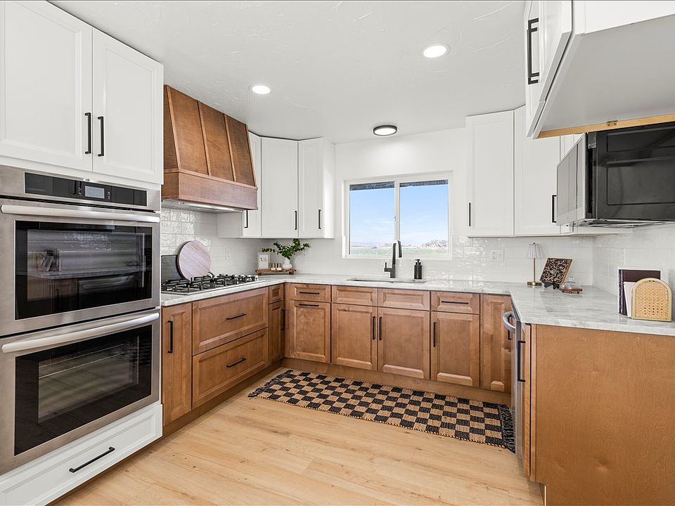 Welcome to this stunning 5-bedroom, 3-bathroom home situated on nearly an acre (.98 acres) of beautifully maintained property. Boasting approximately 3,800 square feet of living space, this residence offers exceptional comfort and functionality. The home features a custom-designed kitchen with marble countertops, a double oven, and a striking custom range hood-perfect for the culinary enthusiast. Enjoy the durability and elegance of waterproof LVP flooring throughout, along with the warmth of two fireplaces. The property also includes a nearly complete ADU in the basement, ideal for multi-generational living or rental income. Additional highlights include a spacious 30x15 shop, 28x25 garage, dual HVAC systems for year-round comfort, and a luxurious primary suite designed for relaxation. This home offers the perfect blend of space, style, and versatility-don't miss the opportunity to make it yours. Square footage figures are provided as a courtesy estimate only and were obtained from county records. Buyer is advised to obtain an independent measurement.