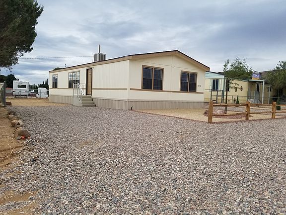 EXTREMELY WELL MAINTAINED This spacious 3 bedroom 2 bath doublewide has HUD approved foundation with tie downs installed and is ready for your FHA, VA, Conv loan. Great location close to community college with beautiful views of Cerbat Mountains. House features: newer roof, newer evaporative cooler, brand new AC, new dishwasher and stove, new flooring throughout, fresh exterior paint, new bathtubs, toilets, sinks, new water heater. The cabinetry is nice. Master suite is spacious and has a soaking tub and separate shower. Large kitchen with breakfast bar and all appliances included. Storage shed and car-port. Lovely rock landscaping in front!