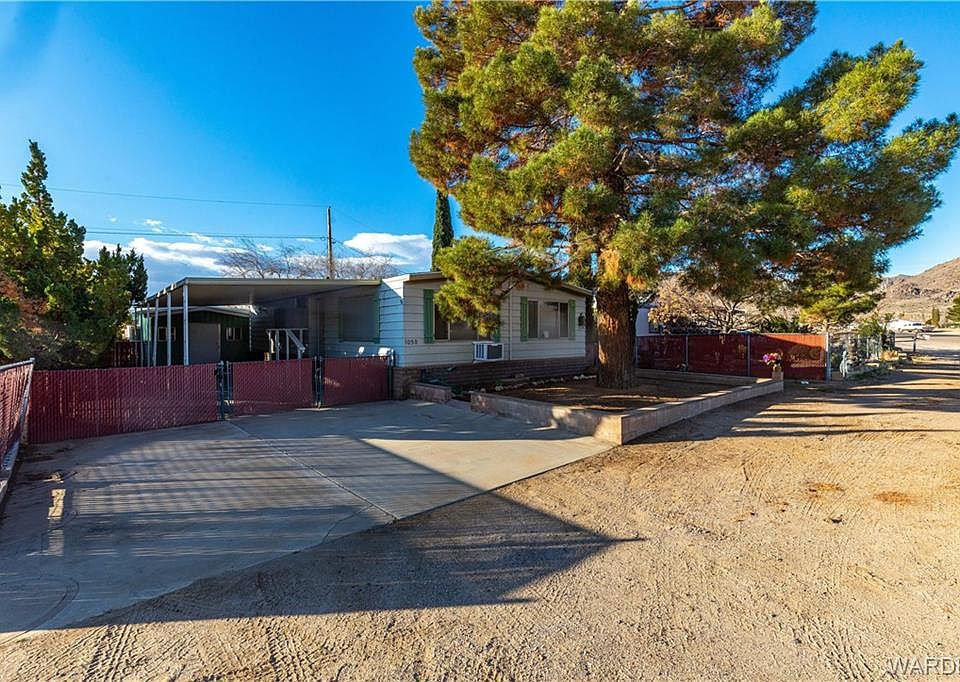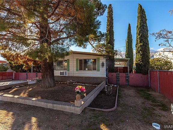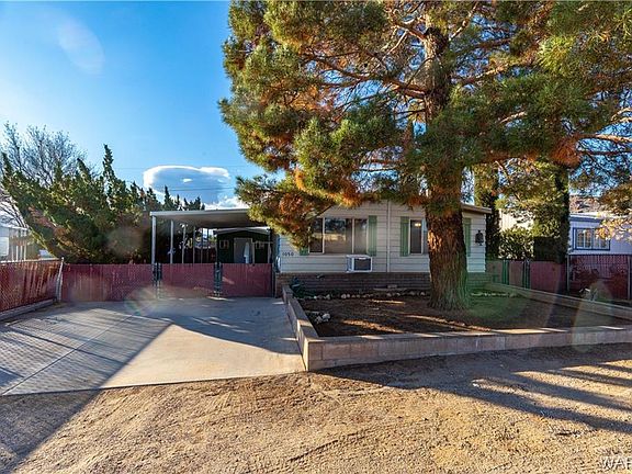 Great location** This 2 bedroom, 2 bathroom home has a very nice floorplan* Nice curb appeal* Large 57'x121' lot* Workshop & 2 storage sheds* Older home but well cared for* Mature trees* Double car covered carport* plenty of additional parking in front of fence* Metal security screen door* Spacious living room with upgraded wood laminate flooring, ceiling light/fan, large view windows with gorgeous mountain views* formal dining area with a built-in hutch* Kitchen has gas stove, dishwasher, refrigerator, pantry & laundry hook-ups* large owners suite with spacious closet, walk in shower and vanity* full size guest bedroom with walk in closet and wood laminate in both bedrooms* Full size guest bathroom with shower/tub combo and vanity* Workshop with power, water & built in shelving* 2 detached storage sheds* rear yard has chain-link colored privacy fending, garden area, beautiful plants and mature trees* Rear covered porch too**this back yard will be perfect to relax and enjoy your evenings after a long day* Kingman AZ is the perfect place for taking the off-road vehicles... w/ATV access to many trails, quite evening walks or enjoy historical downtown restaurants and antique shops*ONLY 35 MINUTES TO COLORADO RIVER & LAUGHLIN NEVADA CASINOS*