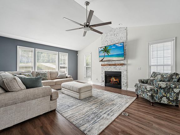 A Rare Find! Nestled in a prime Garner location, this highly sought-after 3-bedroom Ranch home is situated on a spacious 1-acre lot bordered by lush greenery and mature blueberry bushes. Step inside to admire the sun-drenched Family Room adorned with a vaulted ceiling and gorgeous stone surround gas log fireplace. Updated light fixtures and LVP flooring span throughout this striking home. The modern white cabinet Kitchen boasts SS appliances, gas range, and a beautifully updated white tile backsplash. Retreat to the Primary Suite where a vaulted ceiling, walk-in tiled shower with pebble flooring, and spacious WIC await. The extra-large detached 2-car Garage and separate workshop with car lift offers ample space for all your projects and storage needs. Soak in the serene surroundings from the extended deck in the fenced backyard or gather by fire pit for outdoor entertainment and relaxation year-round. Turnkey and ready for your personal touches.