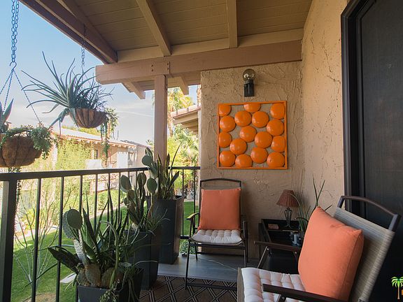 This is the home you have been waiting for! Sophistication and quality abound in this completely remodeled 3 BR 2 BA condo close to downtown and everything Palm Springs has to offer. Resort living with Pools, Spas, Tennis and Pickleball perfect for full time residence or lock your door and leave! Stunning finishes with designer touches normally only found in the finest modern homes. Lovely beamed and vaulted ceilings captivate in the spacious great room and the king size Primary Bedroom has ensuite convenience. Two additional bedrooms and a bathroom can be closed off from the rest of the unit to create a private suite for your guests. Modern kitchen with quartz counters and stainless appliances for the most discerning cook. One of the few units in the complex with In-unit laundry and brand new windows and sliding doors throughout for total quiet and energy efficiency. Your perfect Palm Springs getaway awaits!