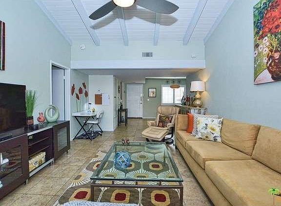 Beautiful and tastefully furnished upper level condo in the very desirable community of Ramon Estados in Central Palm Springs. Turnkey furnished Dual master suite home is ready to rent out or use for your own enjoyment. Many upgrades have been made throughout the home. Vaulted ceilings in the living room and the Master suite with direct access to the large patio from both rooms. Both master suites have large walk-in closets with the washer and dryer tucked away in the second master. This home has a solid rental history since its purchase. Ramon Estados is centrally located to the best that Palm Springs has to offer, downtown is a short walk. Ramon Estados is a great investment property, second home for you or both! Lighted tennis courts, heated pools and spas, clubhouse with fitness center, and beautiful landscaping in a gated community. Come see all that this great community has to offer.