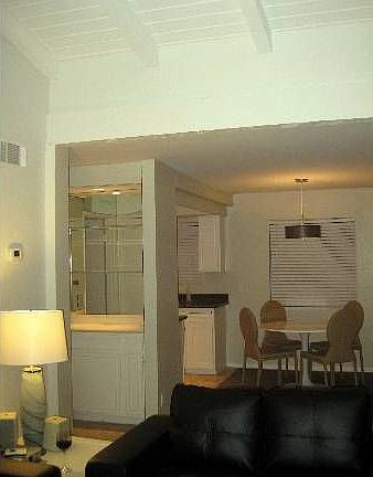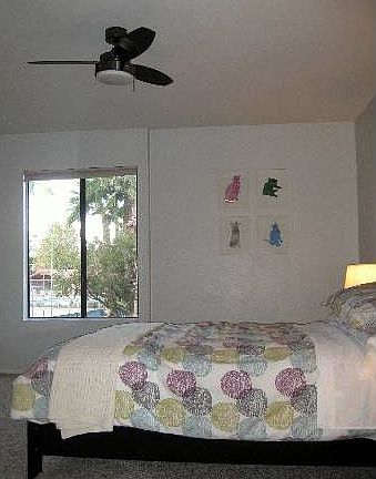 Your Weekend Retreat In Downtown Palm Springs... A cute 1 bed 1 bath 790sf home located on the 2nd floor with vaulted open beam ceilings. A great location in the gated complex with views of the tennis courts and greenbelt. Well kept carpet in the living room & bedroom. Tiled flooring in the hallway, kitchen & bath areas. White kitchen cabinetry, a large single stainless sink, granite countertops & recessed lights. The bedroom is oversized and has a ceiling fan with lots of storage in the 3 closets. A cozy balcony off the living room for your outdoor dining, sip of tea or your evening cocktails. The balcony has a storage closet for your needs. Directly below this unit is a non-resident as it is a storage room for the homeowners of this community where you have a cubical assigned to you via use of a padlock. This complex is well maintained with with 2 pools, 4 lighted tennis courts, game room & a club house for you to entertain with. Best of all, a short stroll to downtown for shopping & restaurants.