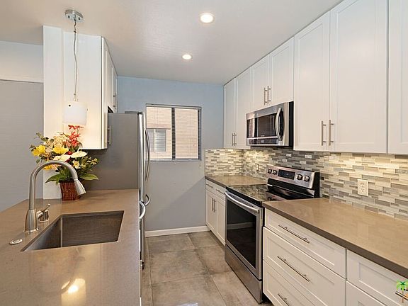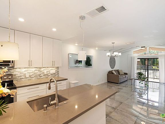 Welcome to Ramon Estados a resort like complex featuring 2 pools, 2 spas, a clubhouse, 2 lighted tennis courts, with fitness center and laundry facilities. This Corner 2 Bedroom 2 Bath Completely Remodeled Open Kitchen, Seller raised both ceilings in Bathrooms during renovations, Newer AC, Upper Unit has Amazing Views overlooking one of the pools and tennis courts. This makes for a great owner full time, part time or seasonal / full time rental. Close to shopping center at Sunrise/Ramon and Downtown Palm Springs. This unit comes with one covered parking space, plenty of guest parking and a small separate storage closet. The low HOA fees includes water and trash, and allows 30-Days minimum rentals. Beautiful well maintained grounds, this complex is on Indian Land Lease and has been extended to 2076, comes partially furnished.