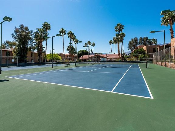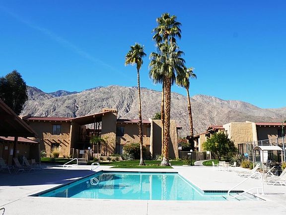 3BD/2BA upper unit in a resort like complex walking distance to downtown Palm Springs and all its' excitement. Association features beautiful pools and spas, tennis courts, sauna, gym and club house, beautiful lush landscaping and mountain views. The spacious condo features a soaring loft like vaulted ceiling in the living room and glass sliders to a balcony with more moutain views. Split floor plan with master on one side and 2 bedroomson the other and two baths assure plenty of room for guests plus increased rental potential. Well maintained complex, HOA with strong reserves, 30 day minimum for rentals preserves the residential feel. Current land lease runs to 2076 per seller.
