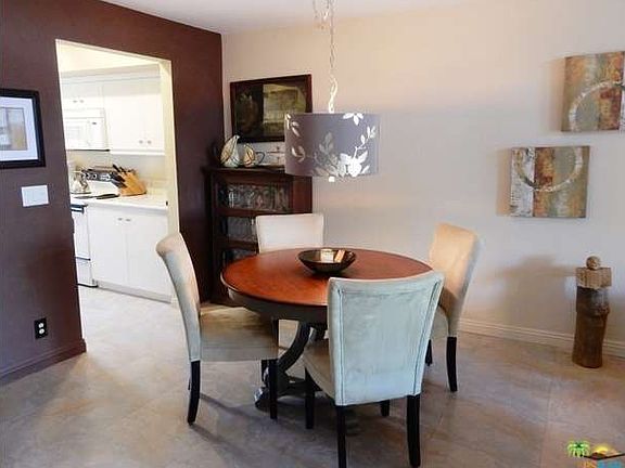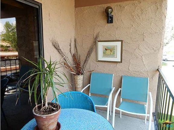 Brand New AC system installed 08/15/2015! Just reduced! Seller says sell!! Absolutely gorgeous updated upper condo at Ramon Estados! Newly redone with 18" porcelain tile throughout, beautiful Onyx slab countertops in kitchen and master bath! Light, bright and airy with mountain views from the back balcony. Spacious master en suite with walk-in shower and walk-in closet - lots of light. Second bedroom has triple closets, plenty of storage space. Well tended grounds feature beautiful swimming pools (recently resurfaced), spas, lighted tennis & pickle ball courts, Recreation clubhouse with kitchen, lounge areas, Ping-Ping, fooseball, large flat screen T.V., work out room and more!! Quiet location in rear of complex!! Complex is like living in a resort! LOW HOA dues, covered parking and close to HOA includes water, trash, landscaping and maintenance of manicured grounds. Convenient on-site laundry facilities. This is desert living at its best!!