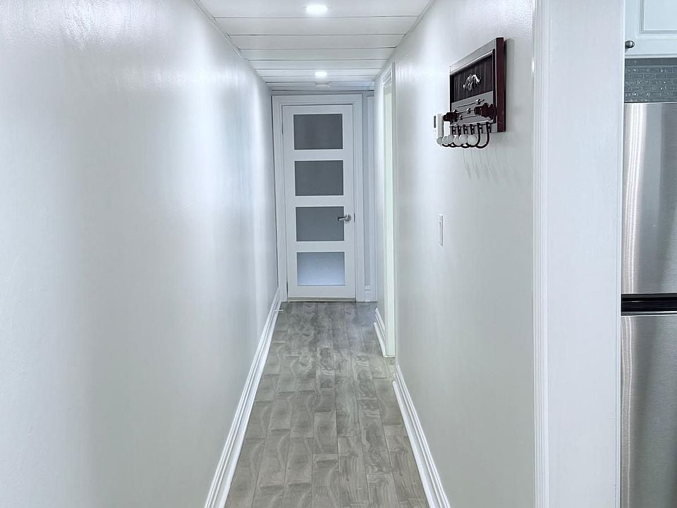This newly renovated 2-bedroom unit at 1050A Eglinton Ave. West offers an incredible living opportunity in a prime Toronto location. The interior is bright, featuring beautiful new flooring and white trim throughout. The contemporary kitchen is a standout, equipped with sleek white cabinetry, stainless steel appliances, and a striking dark countertop and backsplash, which opens into a charming eating area accented by a sparkling crystal chandelier. You'll also enjoy a comfortable family room that provides plenty of space for relaxing or entertaining. A key convenience of this unit is the in-unit laundry, neatly tucked away in a closet with a stacked washer and dryer. The location is a commuter's dream, offering exceptional connectivity to the city. Its proximity to the Allen Expressway allows for a seamless and quick drive, and you're just a short drive to Yorkdale Mall for all your shopping needs. Public transit is equally accessible, with TTC access just a few steps away, and future travel will be revolutionized by the upcoming Eglinton Crosstown LRT, putting you steps away from a major rapid transit line. Just a short walk away from Cedervale and Humewood Park! Don't miss out on this beautiful apartment.