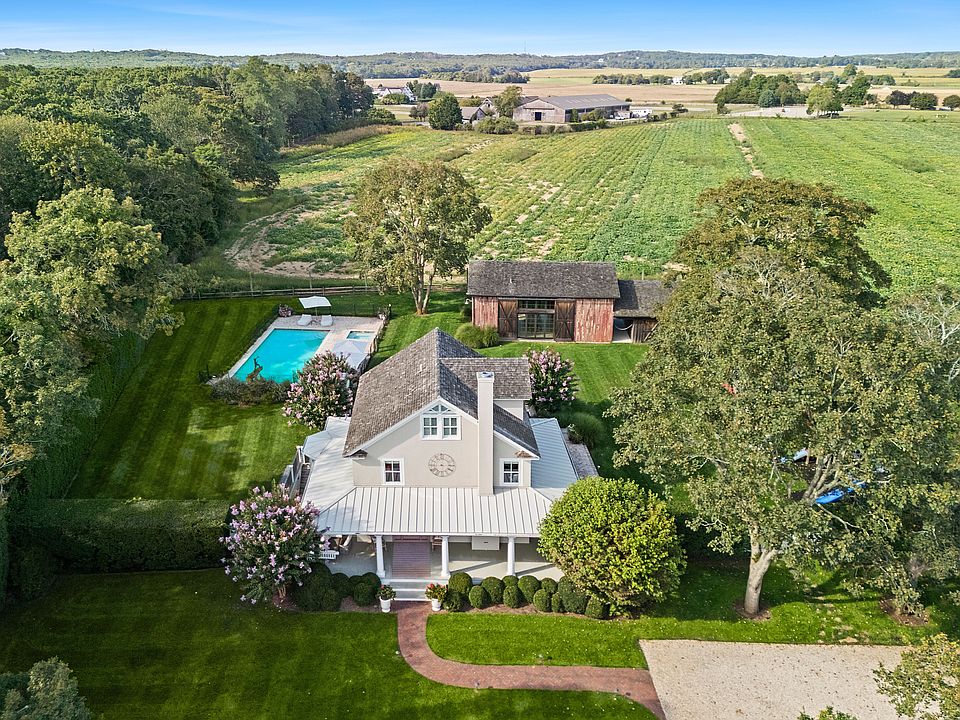 A rare jewel in the Hamptons, this reimagined 1920s farmhouse estate delivers the ultimate blend of heritage charm and modern luxury. Framed by endless farmland and equestrian vistas, the property captures the spirit of timeless country living, elevated with every contemporary comfort.The main residence, masterfully renovated and professionally designed, offers five serene bedrooms, including a showstopping primary suite with a spa-like soaking tub, walk-in closets, and panoramic views that seem to go on forever. Adding even more flexibility, the finished lower level includes a private bedroom with an ensuite bath as well as a spacious entertaining area and playroom—perfect for movie nights, game days, or a kids' retreat.At the heart of the estate stands the fully restored historic barn, an architectural centerpiece with soaring ceilings, walls of glass, and a dramatic dining hall made for unforgettable gatherings. A custom bar, full bath, and lofted billiards lounge transform this rustic treasure into a one-of-a-kind entertaining destination.In addition, a third structure on the property—currently used for storage—offers exciting potential. With the right vision, it could be reimagined as a guest suite, home office, artist studio, or private gym, adding even more versatility to this remarkable estate.Beyond the walls of the home, the property unfolds into a private resort-like escape. A heated gunite pool and spa serve as the centerpiece for summer leisure, while a wood-fired pizza oven, outdoor kitchen, and inviting fireplace create the ultimate setting for alfresco dining and starlit evenings. A charming vegetable garden adds a touch of country charm, and a dedicated children's playground ensures endless outdoor fun for the whole family. Every detail is designed to inspire, making this estate a truly unmatched Hamptons retreat.Located in Water Mill, this estate is perfectly situated to enjoy all the best of the East End. You're just a short drive from pristine beaches, upscale dining, boutique shopping, world-class vineyards, and the cultural attractions of Southampton and East Hampton.