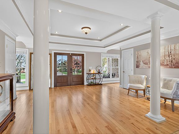 Welcome to 1050 High Point Drive, a 4 bedroom 2.5 bath home offering a first-floor primary suite and an additional bedroom on the main level, creating flexibility for guests, office space, or multi-generational living. The primary suite features double tray ceilings, his and her sinks, a walk-in closet, and a tile shower. The main living room includes custom built-ins surrounding a gas log fireplace. The kitchen has been thoughtfully updated with granite countertops, newer stainless appliances including double ovens, refreshed lighting and fixtures, and a marble tile backsplash that adds a clean and elevated finish. This home is located in a neighborhood with its own golf course, and you can enjoy a short walk down to The Barn, the neighborhood clubhouse and restaurant, for dinner or a cocktail without leaving the community. The backyard backs directly to the golf course, yet still offers a sense of privacy and a peaceful, scenic setting. A charming front porch and side-entry garage enhance the curb appeal. Outdoor living continues with the expanded deck, featuring both an open-air area for dining and a covered and screened portion ideal for relaxing in any season. The partially finished walkout basement adds flexible living space for a second family room, home gym, playroom, or office, along with ample unfinished storage. Recent improvements include new hardwood flooring in 2023, a new roof and gutter system with guards in 2023, a new water heater in 2023, five new front-facing windows in 2023, upgraded front doors, new garage doors, and the addition of a third-car garage. This home combines neighborhood amenities, a beautiful golf course setting, thoughtful updates, and everyday comfort. Come make it yours, it is pristine, truly turn key, and ready for you.