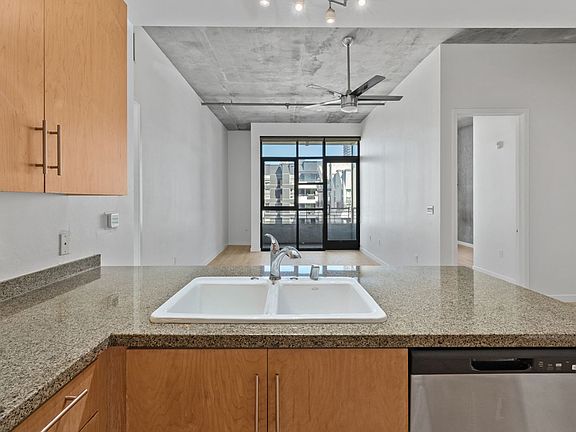 This 5th floor, 2 bedroom 2 bathroom condo is rarely available featuring over 1000 square feet, laundry in unit and 2 parking spaces (tandem). Brand new luxury laminate plank flooring just installed and freshly painted! Ready for move in! Split floorplan with large bedrooms and living room and kitchen in between. Floor to ceiling windows looking out to 11th Ave allow natural light throughout. M2i just had all common areas remodeled including a fitness center, 7th floor deck with fire pits and BBQs and central tranquil courtyard with fountain.