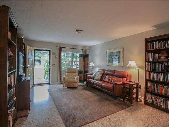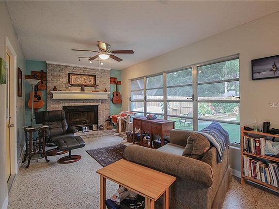 Delgihtful Dunedin! Walk to Highlander Park & Art Center/ Community Center. This Charming Home offers Great Curb Appeal with Lush Landscaping on a Large 73x150 Lot. This Wonderful 2/1.5/1 Home shows Pride of Ownership. Living Room & Dining Room with Terrazzo Flooring. The KITCHEN has been UPDATED with New Wood Cabinet, Stainless Steel Appliances, Glass Top Range & BBQ Pass through Window. Enjoy the Cozy Family Room with WOOD BURNING Fireplace. The Master Bedroom with Adjacent Bath with Tub/Shower. Guest 1/2 Bath. Sliders lead to the Large SCREENED PATIO and features an AMAZING FENCED BACKYARD with Plenty of Trees for Shade, Veggie Garden Box, Bamboo Trees & ZEN CORNER. The Bamboo Gate provides access to the Creek & Walkway to HIGHLANDER PARK. For those wishing for an Active Lifestyle- Enjoy the Bike Path thats 1.5 miles to Downtown Dunedin. Golf Cart Friendly Community provide access to all the Community has to offer. The Lot line goes to the middle of the Creek. This Home has EVERYTHING you are looking for in a PERFECT LOCATION- Close to Pinellas Trail, Historic Downtown Dunedin, Parks, Shopping, Restaurants, Beaches & Tampa International Airport. HWH 2017. A/C 2019. Newer Electric Panel.