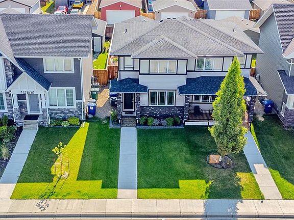 Welcome to 1050 Kolynchuk Crescent in the desirable Stonebridge neighborhood! Step inside to 9’ ceilings and a welcoming living room accented with a stylish board and batten feature wall, along with a conveniently located half bath. At the back of the home, the kitchen overlooks the backyard and offers quartz countertops, a tile backsplash, pantry, eat-up island, double undermount sink, built-in dishwasher, and microwave hood fan. A bright dining nook with custom bench seating completes the main floor. Upstairs you’ll find three bedrooms and a full bathroom. The primary suite includes a large window and a 4-piece en-suite. The fully developed basement extends your living space with a cozy family room/rec area, additional bedroom, 3-piece bathroom, and laundry. Outside, the backyard has been thoughtfully landscaped with a patio, fireplace, and garden boxes. An 18' x 26' detached garage provides off-street parking and extra storage. Additional features include central air conditioning and underground sprinklers for added comfort and convenience. Call your Realtor today to book a private showing!