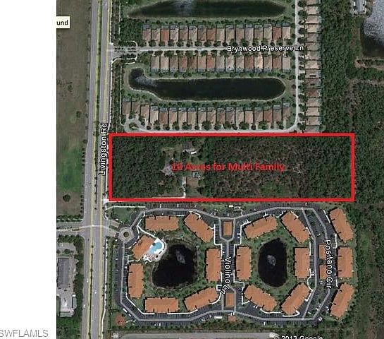 Being sold as a 10 acre parcel. Currently zoned as agriculture. Collier County will give up to 7 units per acre. Total price $3,250,000. Suitable for rezoning to PUD with city water, sewer in place. 330 feet of frontage on Livingston Road. Total dimension 330 x 1320. Surrounded by great developments including Brynwood Preserve to the North, Positano Place to the South & Andalucia to the East. Wyndemere, Marabella Lakes, Kensington & Grey Oaks all within eyesight. Less than 1 mile South of Pine Ridge Road on Livingston Road. Call for additional zoning-PUD information. The other lots that are a part of this 10 acre parcel are: MLS # 213018442, MLS# 213018449 & MLS# 213018461. NOTE: This lot currently has a house on it.