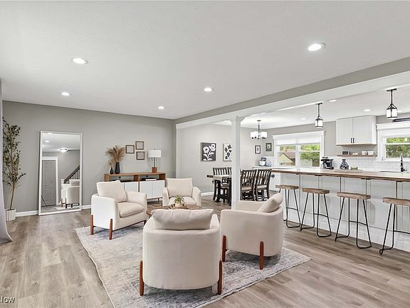 Prepare to be moved! Welcome to 1050 Meadview Drive—a beautifully maintained two-story Colonial nestled in the heart of Seven Hills. With its inviting white-fenced porch and thoughtfully designed landscaping, this home radiates classic charm and curb appeal from the moment you arrive. Step inside to a spacious and sunlit living room that seamlessly flows into the heart of the home—the kitchen. You'll find crisp white cabinetry, modern finishes, and plenty of storage, along with a large island that offers extra seating and functionality. Kitchen appliances are included, making your move-in even easier The cozy living room features a fireplace surrounded by elegant white built-ins, perfect for relaxing evenings or entertaining guests. A convenient half bath rounds out the functionality of the first floor. Upstairs, you’ll discover five generously sized bedrooms, each filled with natural light and versatile enough to accommodate guests, office space, or growing families. The shared full bathroom includes a stylish modern vanity and ample storage. The Master Bedroom comes complete with its own private full bath, offering a perfect retreat. Downstairs, enjoy a beautifully finished rec room—ideal for a home theater, playroom, or hobby space. The large utility room remains unfinished, providing ample storage and room for your projects or seasonal items. Recent upgrades include a newer furnace and AC system installed in 2023. Step out back to an expansive backyard featuring a newly added patio—perfect for outdoor entertaining, gardening, or simply relaxing in your private oasis. An attached two-car garage provides shelter from Ohio’s winter elements and adds everyday convenience. Just minutes from Quarry Square Shopping Center, the scenic trails of West Creek Reservation, and a small walk to the John Glen Park nearby. The space you need, the charm you love—make this house your forever home!