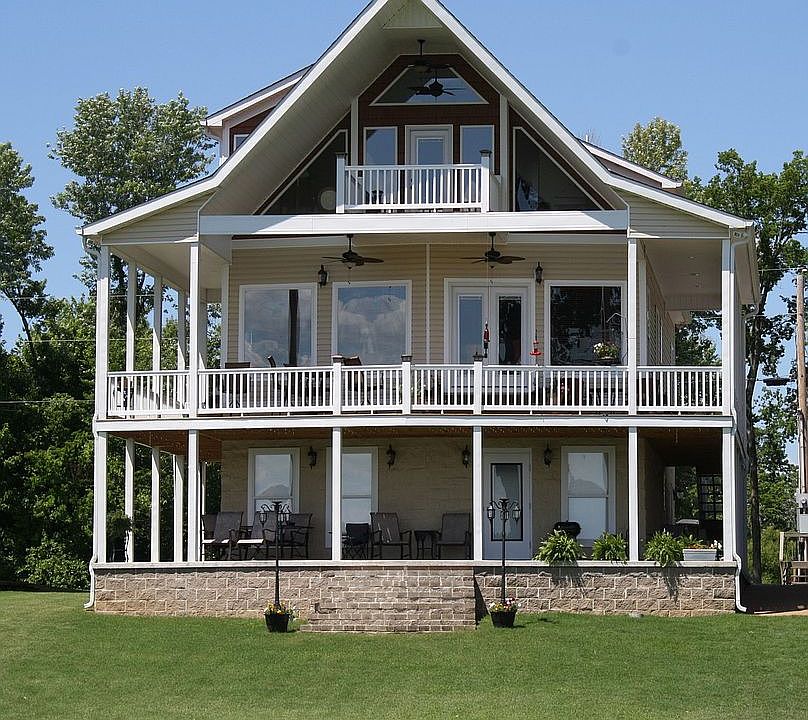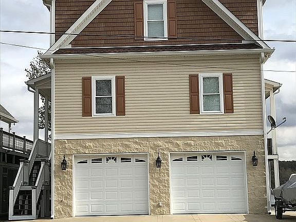 Beautiful 10 yr old Custom Built unfurnished 3 bedroom, 3 1/2 bath home overlooking the scenic Tennessee river. Exceptional view with a fantastic long front lawn going down to waters edge. This is not a cabin, but a 3 level home with almost 2500 heated sq.ft. total on 2nd and 3rd floors plus a 1250 sq ft. double garage large enough for 2 vehicles and a boat or pontoon plus an ample work area on the ground level. The garage has a 10 ft. height inside and has commercial wire shelving installed on three complete walls at an 8 ft. height for that extra storage that is always needed in the garage. Tiled floors in bathrooms and laminate hardwood flooring in living, dining and kitchen, bedrooms and gameroom are carpeted. The game room is large enough for a full size pool table and a bar with a sink (see pics), game room could serve as other uses or 2 more bedrooms. Tall custom kitchen cabinetry with soft close doors and drawers. Kitchen is plumbed for electric or gas, currently has electric range. The main floor has 9 ft. height ceilings that are trayed in living room, kitchen and dining room with hardwood flooring. Upstairs has very large master bedroom with vaulted ceiling overlooking the Tennessee river. The master bath has a whirlpool tub and a shower also the upstairs has an 8 foot ceiling throughout. The baths have custom vanities and tiled floors. The home has 2 decks which are wrap around on 3 sides and a balcony for the master bedroom, both decks and the master bedroom walkout balcony have roof over. The home has 2 separate air conditioning units for the two main floors. All of this is in a private gated community which has a boat launch ramp available at the end of the street. Come, relax and enjoy life and play on the Beautiful Tennessee River!