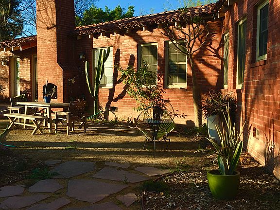 Sitting on a sprawling flat promontory at the end of a small, private street. Classic 1930's ranch with mini orchard of fruit trees. Professionally installed raised beds for vegetables and herbs. Outdoor fireplace. Sweeping views of the city and looks out to a neighboring mountainside that has just been designated as a preserved park space. Large master bedroom plus 2 additional bedrooms, a character-rich kitchen with custom cabinets, granite and butcher block counter tops and farm sink. Open living/dining room plus artist studio and a two car garage that has been converted into a family room. Wood floors, updated plumbing and electric. Central heating and A/C. A short walk to bird-watching at the Audubon Center in Debs Park.