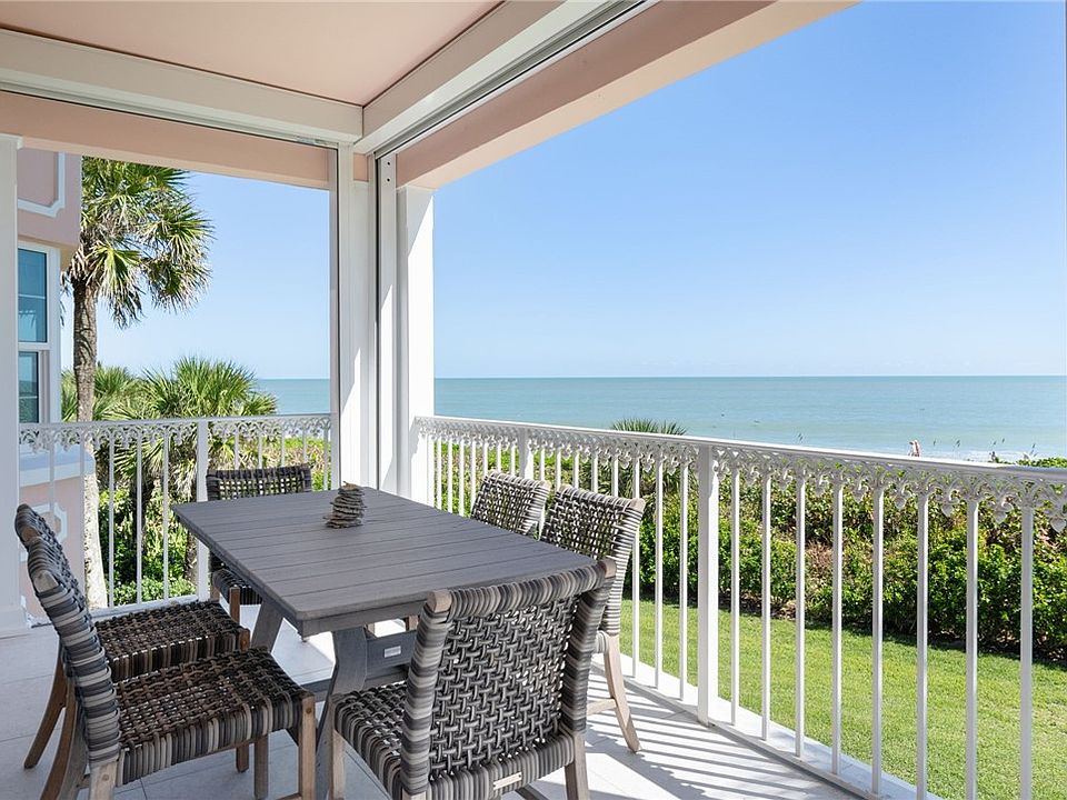 Step into this stunning professionally renovated direct oceanfront condo and you are immediately greeted w/amazing panoramic views of the ocean & beach. Enjoy ocean breezes from your 2 open-air porches. There are NO adjoining walls in this spacious 3/3 floor plan & the corner location adjacent to the Moorings private beach access ensures plenty of privacy. All impact glass +electric storm shutters for the 2 porches. Galleons is an intimate 21-unit community w/onsite manager, heated pool, whirlpool spa, private beach access & 1-car garage. 2 Pets allowed w/board approval; no weight limit.