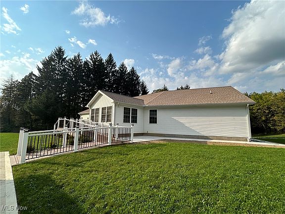 Immaculate Raised Ranch Home on 10.81 acres in Harpersfield Township. Thoughtfully accessible Open Concept living with 4 ft Hallways, 42" doorways, oversized bedrooms and bathrooms along with an elevator for easy access from the basement/garage area to the main living area. The kitchen is custom built with Quartz countertop and extra storage. The living room is open to the Knotty Pine Sunroom. The primary suite has an oversized walk in closets and large on suite. The main level laundry/mud room has access to the back deck. Cortex Laminate flooring throughout. Pex Water System. Crystal Clear Water Softener System. Whole House Kohler Generator. The 4 car attached garage leads to the lower level with a full bath and another laundry area. The front covered porch overlooks nature along with the back deck having picturesque views and access to the Trex wheelchair ramp. The back patio with a natural gas grill line. 24x24 Metal Recreational barn complete with Knotty Pine finish, casement windows, french doors, sliding barn doors with magnetic screen and 2 sandstone bar tops. Another Morton Pole Barn with Cement flooring and loft is perfect for the project enthusiast. Simple Safe security system. See Home Info Fact sheet in supplements for more information. So much to offer in this one of kind property in the Geneva School District.
