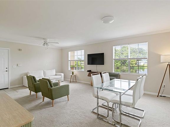 Now available for an annual lease is this cute and tidy 2/2 condominium with a beautiful water view. The first-floor unit features a comfortable and spacious living/dining room area with crown moldings right as you enter the home. Love to cook, well this fully appointed kitchen with new stainless steel appliances, ample storage and roomy counters will be sure to put a smile on your face. Newer carpet flows throughout the whole unit and is a nice respite for tired feet. The primary bedroom boast a large walk-in closet and an ensuite bathroom with soaker garden tub. Invite family and friends to stay in the guest bedroom, conveniently located on the opposite side of the condo providing privacy, seclusion and ample closet space. Just next door is the second bathroom with another tub to relax in. You'll enjoy the convenience of your own washer and dryer in the unit and a designated office/storage nook off the entrance finished the unit off The unit is nestled within the gated Villagio condominium association, minutes away from downtown Sarasota, shopping and the beautiful beaches, with easy access to 301, I75 and public transportation. Community amenities include a heated resort-style pool, tennis court, playground and gym. Rent is $1750 unfurnished (no utilities included) and move in requirements are first month's rent and a security deposit equal to one month's rent. The unit can also be rented partially furnished at $1850 per month (no utilities included). The Villagio charges $100.- per adult for the background check. Unfortunately, pets are not allowed, and it is a non-smoking unit. Call today to set up your showing or virtual tour.